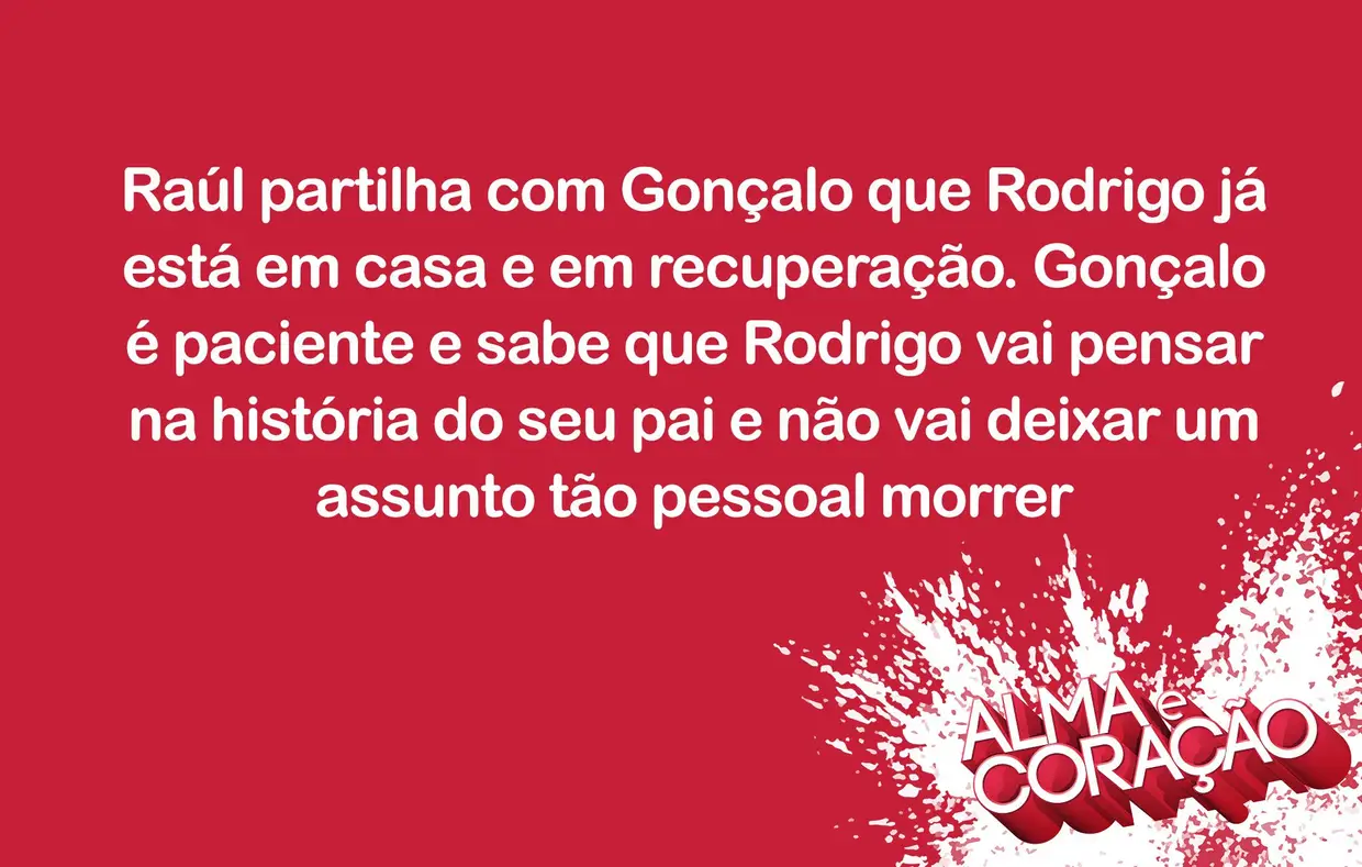 Gonçalo fica satisfeito ao ver que Rodrigo acredita na possibilidade do pai estar vivo